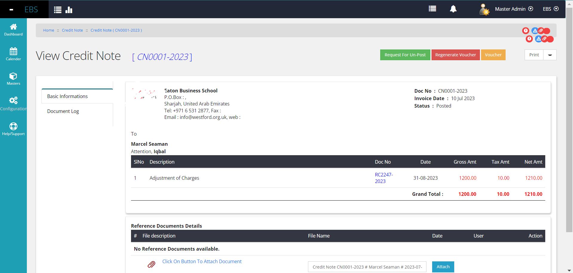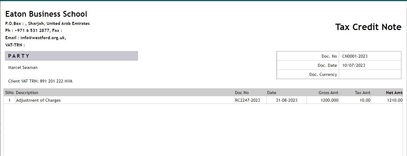 Description, Expense Invoice documents, Credit Note amount, and Tax