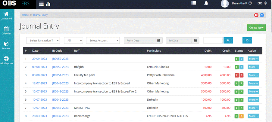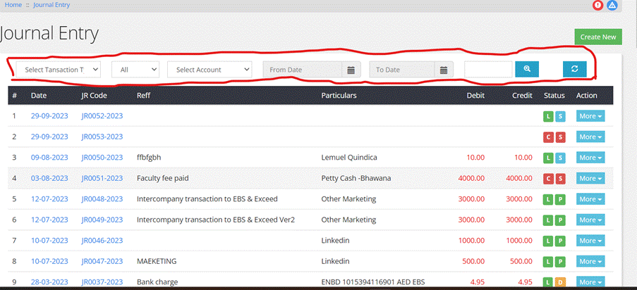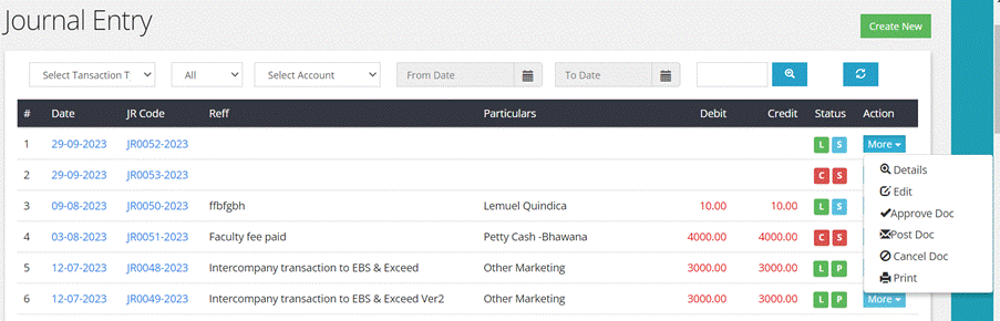 - Debit Amount/Credit Amount: Enter the Debit or Credit amount corresponding to the